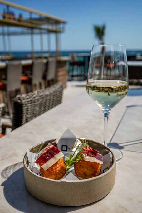 Sip on our signature cocktails, enjoy hand-prepared Spanish tapas, and soak in panoramic views of the Mediterranean from our elegant rooftop lounge. With the warm coastal breeze, golden hour lighting, and laid-back music, every visit becomes a sensory escape. Our mixologists and kitchen team are passionate about creating moments that delight both your palate and your soul.
